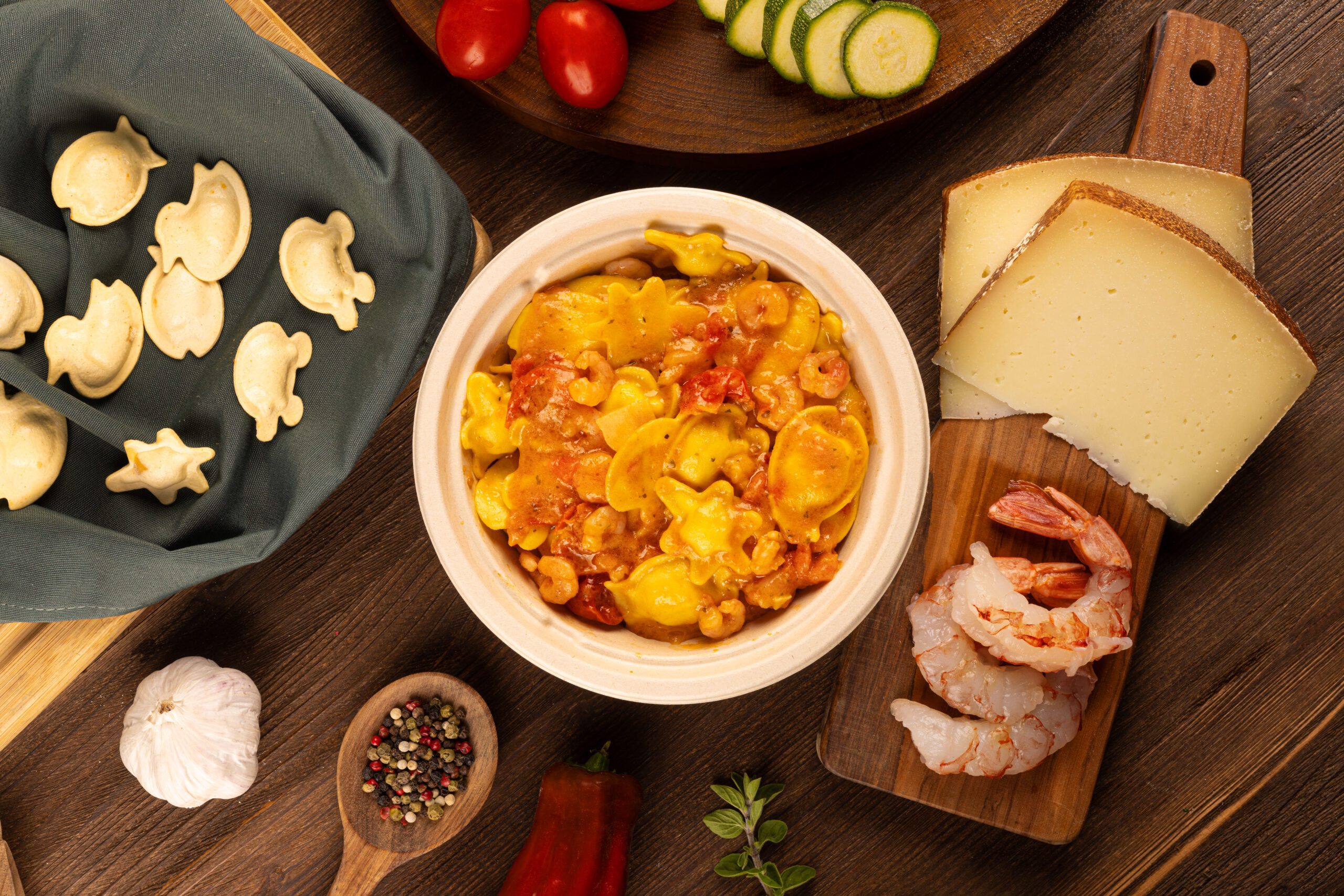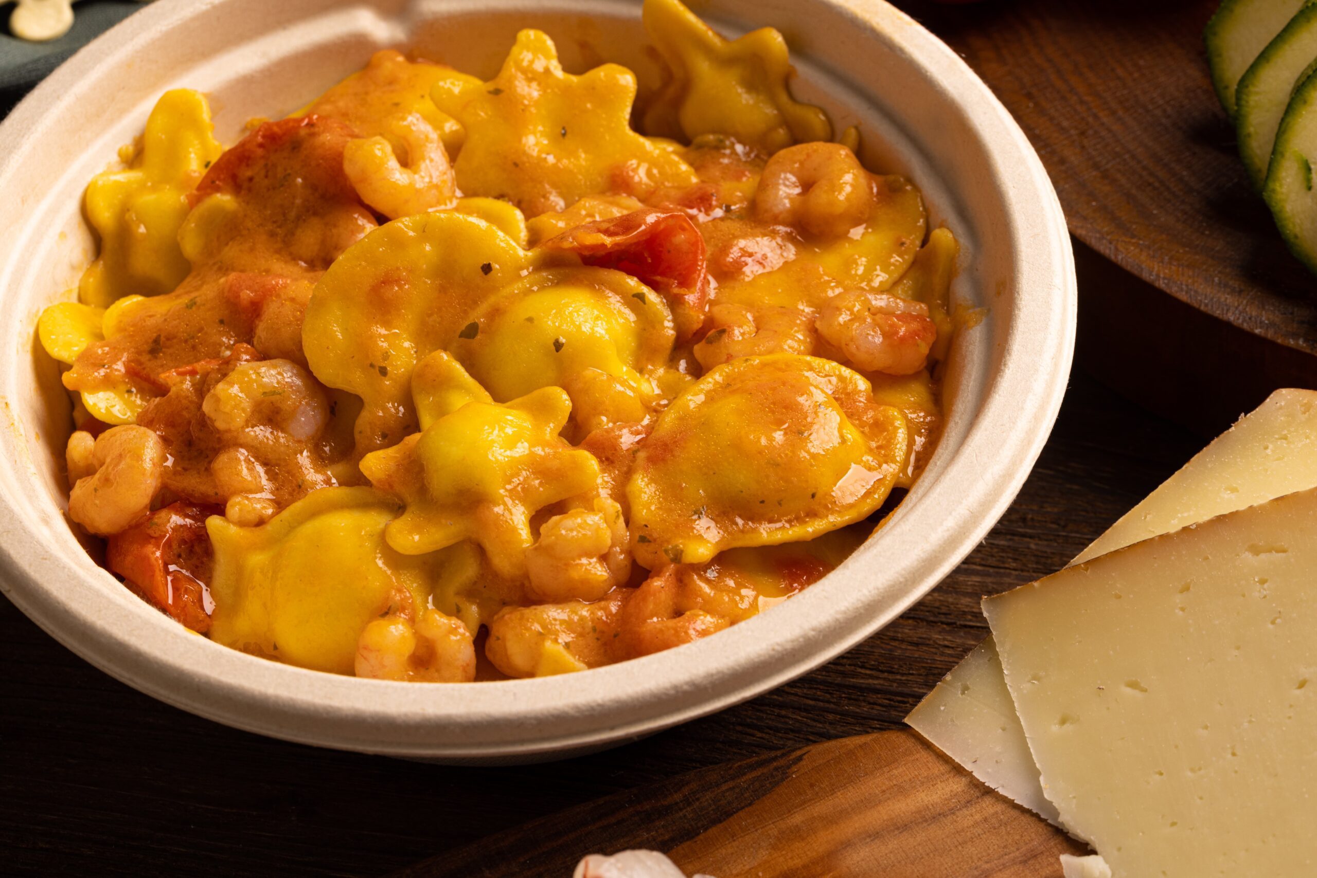 The main ingredients of this dish include wheat flour (wheat), milk (milk), eggs (egg), cheese (cheese) and shrimps (shrimps). Ravioli, a stuffed pasta typical of Italian cuisine, is filled with cheese and served with a delicious shrimp sauce that enhances its flavor. “Cheese Ravioli with Shrimp” at Giorgio Mare Miami is a culinary experience that combines the freshness of Italian ingredients with the exquisiteness of shrimp, creating a dish that will transport you directly to the Italian culinary tradition with every bite.